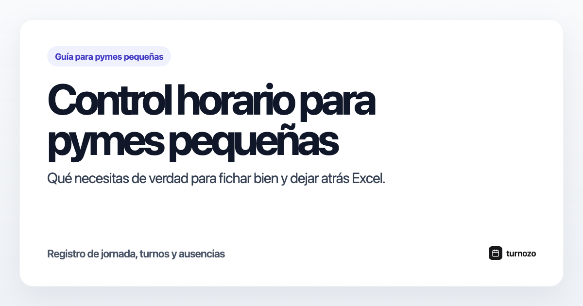 Si primero quieres entender la parte legal, lee también nuestra guía de control horario en España. Y si tu problema actual sigue siendo fichar con hojas o plantillas, compara esto con registro de jornada: Excel vs app.