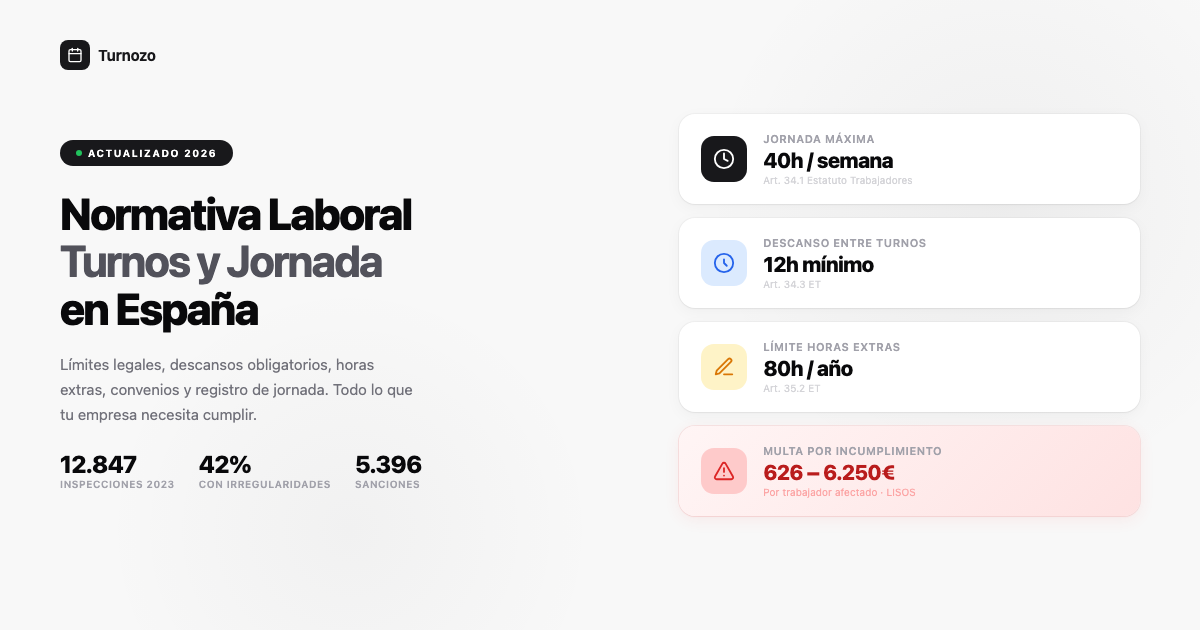 Si gestionas turnos de trabajo en España, necesitas conocer la normativa. No por cultura general, sino porque las multas por incumplimiento son reales y se aplican por trabajador.